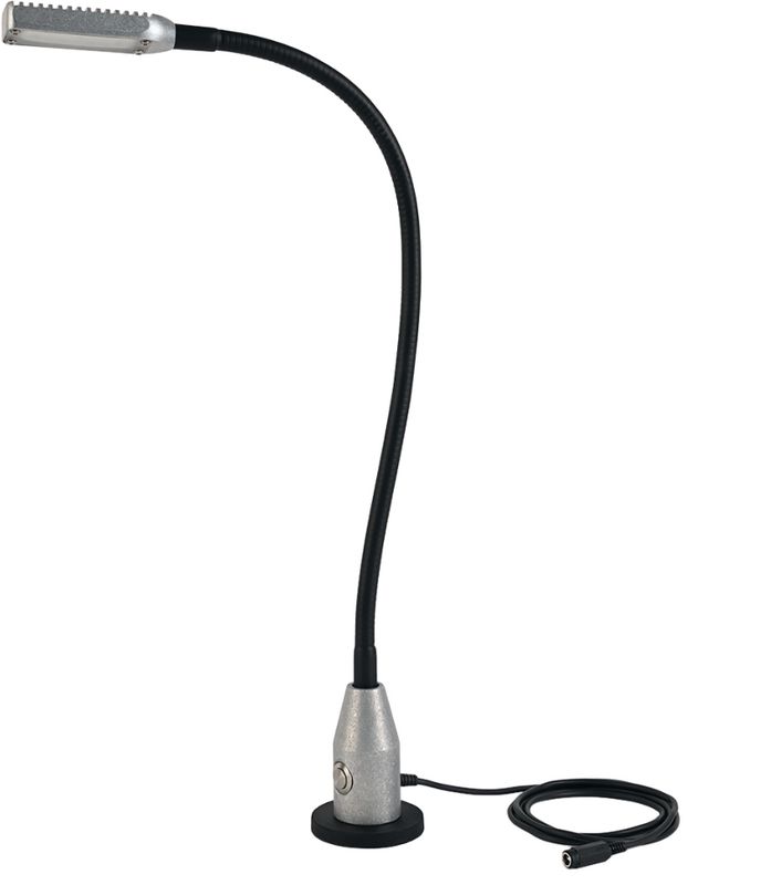 kräftigem und gummiummanteltem Magnetfuss. Wie all unsere LED-Leuchten überzeugt es mit niedrigen Verbrauchswerten. Die LED-Arbeitsleuchte ist Staub- und spritzwassergeschützt nach IP65 bis Netzteilkupplung. Anschluss mit Netzteil 24 V (im Lieferumfang) oder direkt an 24 V Maschinensteuerung.